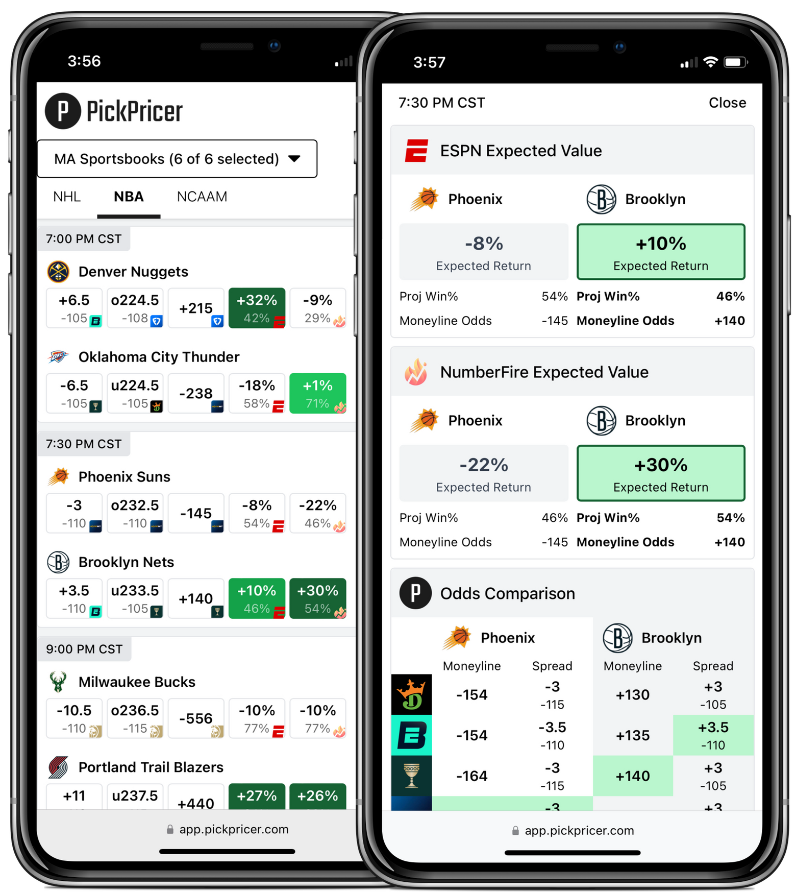 The most favorable odds for any bet are automatically calculated and shown in real time on PickPricer